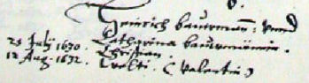 Hans Wälti and Elsbeth Lüthi married in 1649, and they lived in the hamlet Schwanden in Rüderswil. They had at least nine children, and the last one was baptized in 1670. At the assumption that Elsbeth was not more than 45 years old in 1670, she was born between 1625 and 1635. The birth of her husband therefore falls in the time between 1610 and 1633. - Possible baptizing data of this Hans Wälti: - 13.5.1621 Hans Wälti from Rüderswil and Barbara - 22.12.1631 Ulrich Wälti from Niederäschli and Barbara Ellenberger - 3.7.1631 Hans Wälti from Schwanden and Anna Wyss